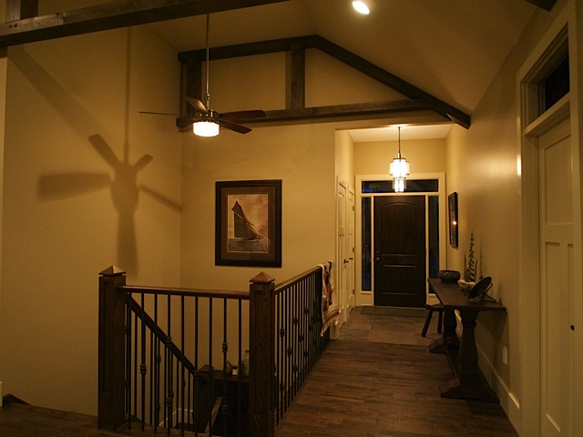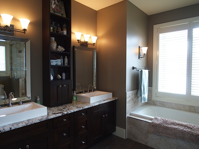 A one story home with a two car garage. The home features a covered porch at the front and rear. The basement is finished as per plan with a three piece bathroom.